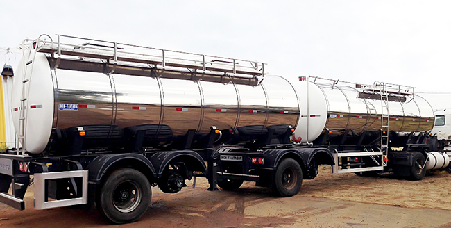 Fabricamos tanques Bitrem para atender a necessidade de altas demandas em transporte rodoviário de leite e óleo vegetal.